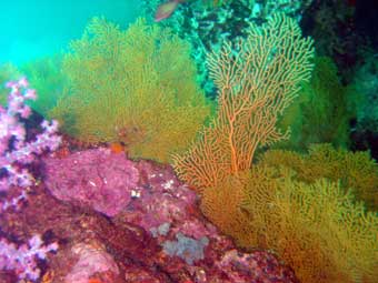 This huge underwater pinnacle is completely covered by colorful soft coral, huge sea fans and the surrounding marine life is just unbelievable. On the top of the reef lots of Moray Eels, Lion fish, Scorpion fish and other schooling fish.