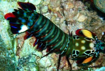 In the shallows around the coral heads you will find octopus, crabs and mantis shrimps on the hunt for food. The occasional hawksbill sea turtle and white tip reef shark patrolling the reef will keep you on the lookout during your dive, especially at night. Giant moray eels can be found in cleaning stations with a large variety of shrimps. Decorator, big red and hermit crabs walk around the reef at night along with the spiny and slipper lobsters.